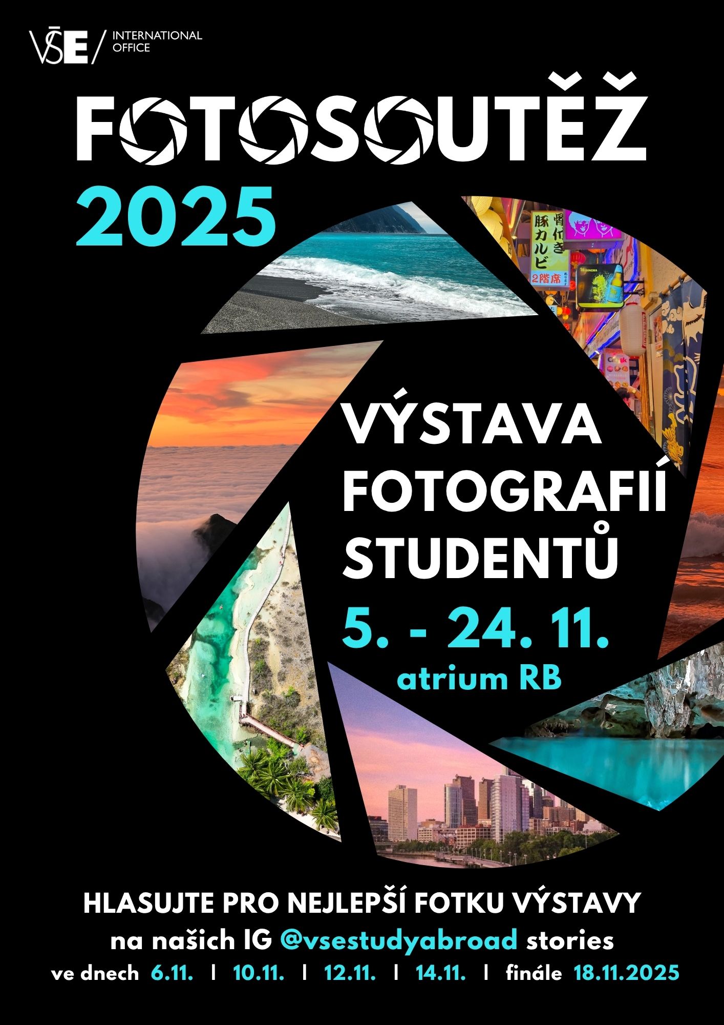 Součástí výstavy je i studentské hlasování, které proběhne na Instagramu @vsestudyabroad formou IG stories ve čtyřech kolech: 6., 10., 12. a 14. listopadu 2025. Finálové hlasování se uskuteční 18. listopadu, vítěz bude oznámen 24. listopadu 2025 spolu s oceněním za kategorii akademické prostředí a výběrem nejlepších fotografií dle odborné poroty.