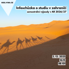 Oddělení zahraničních styků vás zve na informační schůzku o semestrálních výměnných pobytech do zahraničí, která se uskuteční v úterý 2. 12. 2025 od 16:15 v RB 101.